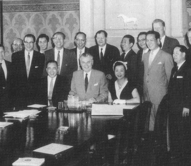 A cross country committee was established to lobby for the lifting of these restrictions. Revisions to the immigration laws were sorely needed and Jean believed strongly in family reunification. Jean was the only female member of a delegation of forty Canadians and Chinese Canadians to meet with Prime Minister John Diefenbaker. Diefenbaker invited her to site beside him and to repeat what was said in the briefing. A little known fact was that he was hard of hearing in one ear. From that day, Jean became the unofficial spokesperson of the Chinese community. Due to this delegation, the immigration regulations were revised.