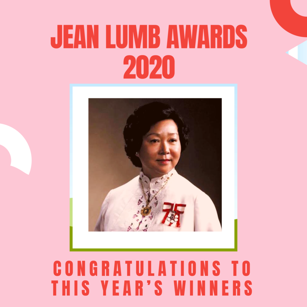 Jean Lumb Awards 2020This entry was posted in Blog Post on October 15, 2020 by Danny Yen Congratulations to the 2020 Jean Lumb Award recipients. Congratulations to the 2020 Jean Lumb Award recipients. If you missed our history making virtual event, you can view it online here.